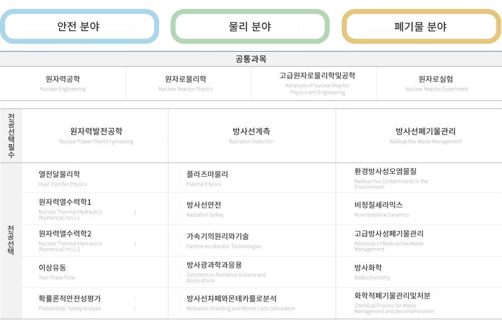 원자력발전공학, 이상유동, 열전달물리학, 원자력안전과규제, 안전공학과 원자력안전법 |